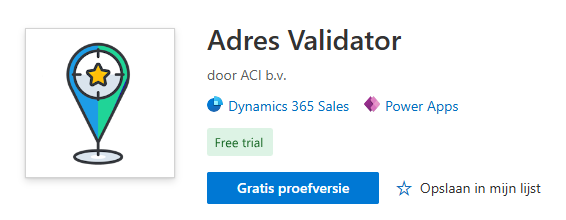 Deze kan worden gevonden middels de volgende URL: Microsoft AppSource – Adres Validator