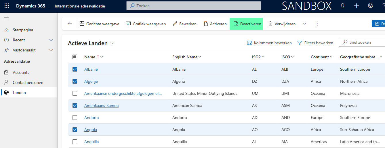 Er wordt een landentabel meegeleverd welke wordt gebruikt voor het zoeken van adressen in andere landen. Indien landen worden gedeactiveerd dan zijn deze niet meer inzichtelijk bij de landenlijst.
