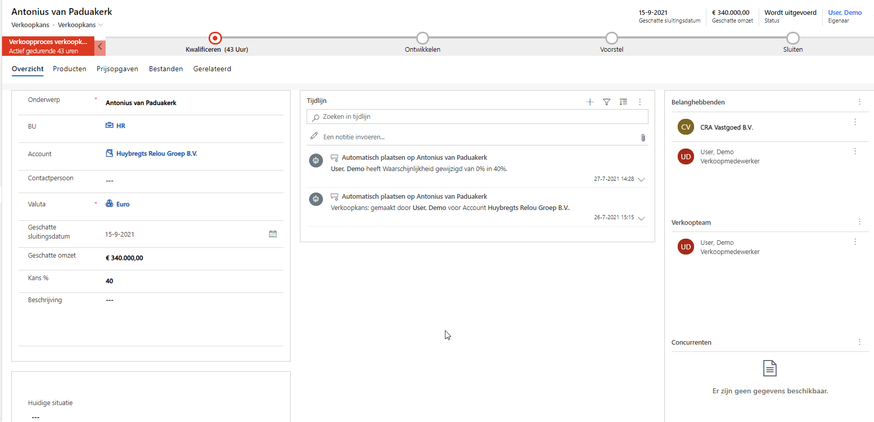 Voer vervolgens alle relevante gegevens van de verkoopkans in: